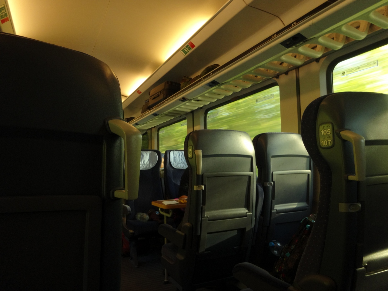フランクフルトからボンまで、インターシティ(IC)で移動しました。座席の予約をしていましたが、乗った車両には違う区間の座席指定が表示されていました。幸い混んでいなかったので、指定されていない空いた座席に座りました。他の乗客も同じような状況になっている人がいたようでした。予約した車両そのものが無いことは経験していましたが、車両はあるのに、ダブルブッキングになっているというのは初めてでした。