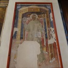 壁だけでなく、柱もフレスコ画で歴代の教主が描かれています。