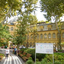 マルギット橋でブダ地区側に渡って、少し北に進むとあります。にぎやかな観光エリアから少し離れているので、このあたりはとても静かです。施設も温泉というより療養所というかんじです。入場しなかったので温泉の中身はわかりませんが、落ち着いた雰囲気のこじんまりとした温泉という感じです。