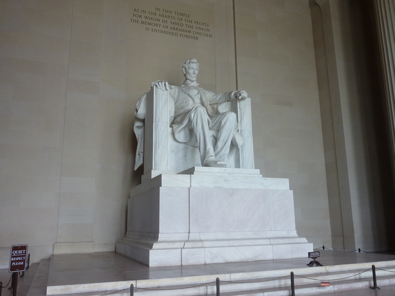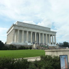 モール西端にある神殿のような建物とリンカーン像。階段を上るとまっすぐ東側にワシントンモニュメントと連邦政府議事堂を眺めることができ、景色が良いところです。