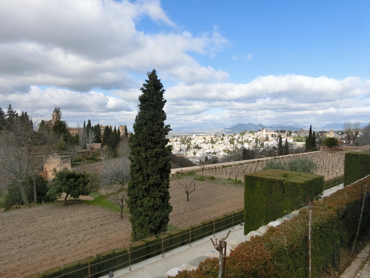 さらに向こうのヘネラリフェから見たアルハンブラ宮殿の全景です。