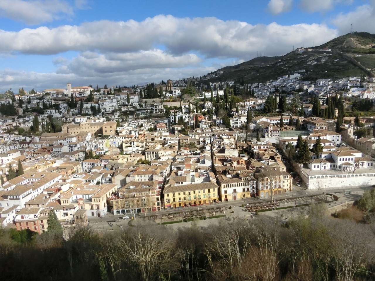 アルカサバのさらに右のダロ川を隔てた丘の白壁の町並みがアルバイシンです。