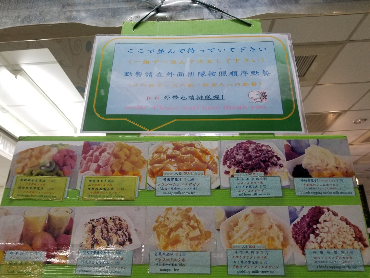 マンゴーの季節しか営業していない有名なかき氷店です。午前中の開店時間直後にはいつも行列ができているようです。お邪魔したのは平日の夕方、雨が降っていたせいか店内にお客さんは1組だけ!並ばずに食べられてラッキーでした。ミックス果物かき氷はフルーツが4種類乗っています。季節によってフルーツが変わるようなので注文時に何が乗るか聞けたら聞くと良いかもですね。