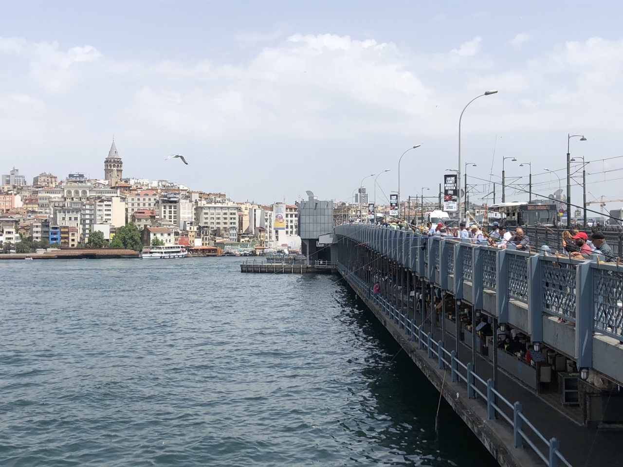 新市街と旧市街を繋ぐ橋で、橋の上は釣りをしている人だらけです。大物でなく、小さな魚が釣れているようでした。
