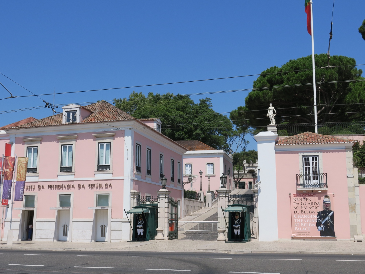 ジェロニモス修道院から馬車博物館に向かう途中に可愛いピンク色の建物があり、何かと思ったら「ベレン宮殿」でした。現在は大統領の公邸として使用されており、門の前には衛兵の姿も見られました。それほどの重要施設の割には、物々しい雰囲気は感じませんでした。