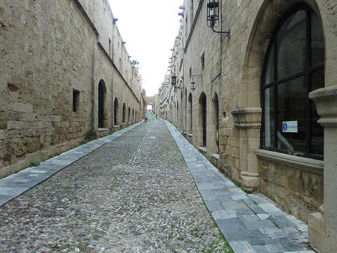 ロードス島の観光案内所は一番中世の雰囲気を残す騎士団の通りの騎士団長の宮殿から見て、坂の下側の左手にあります。