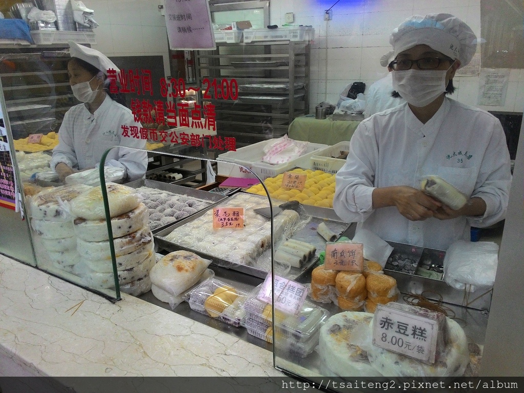 本当はマナー違反だが、中国だからOKってことで沈大成の餅を食べた。