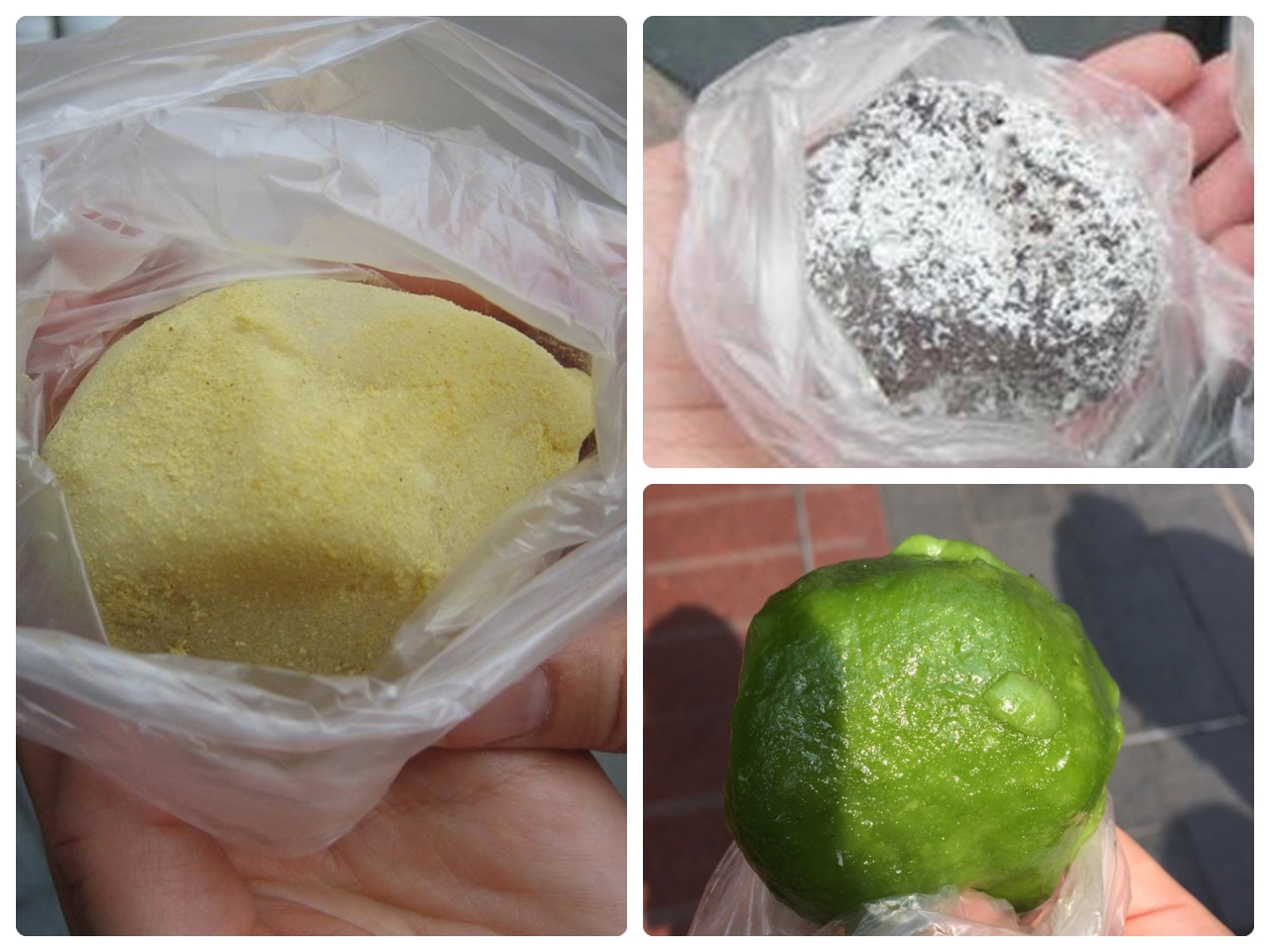 定番の金団(きなこ餅)と双醸団(黒ゴマ餅)の他にお嬢の強い押しで蛋黄青団を購入。