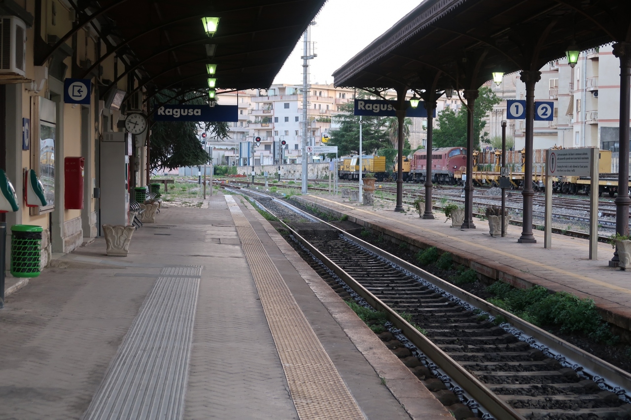 しかし、ラグーザやヴァル・ディ・ノート一帯の鉄道は、超閑散路線。ラグーザ駅も、県庁所在地の都市の駅なのに、その辺の無人駅と同じ。駅前広場にはペンペン草が生えているし、駅舎も正面から入れない。日曜祝日は全列車運休で、駅はほぼ廃墟と化す。平日も8往復程度のディーゼルカーが発着するときだけ、10人か20人前後の観光客や地元の人がパラパラと動くだけ。