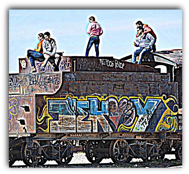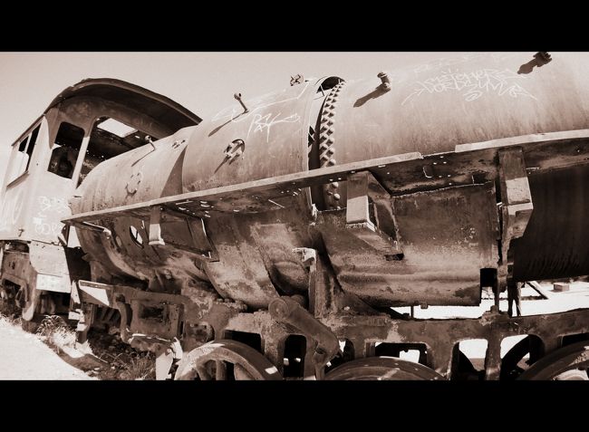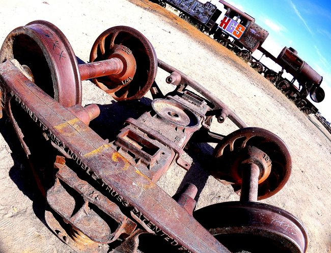 「列車の墓場」.....まあ、高山の砂漠の中に、こんなものが放置されている事自体が、不思議で、インパクトはあるのですが......