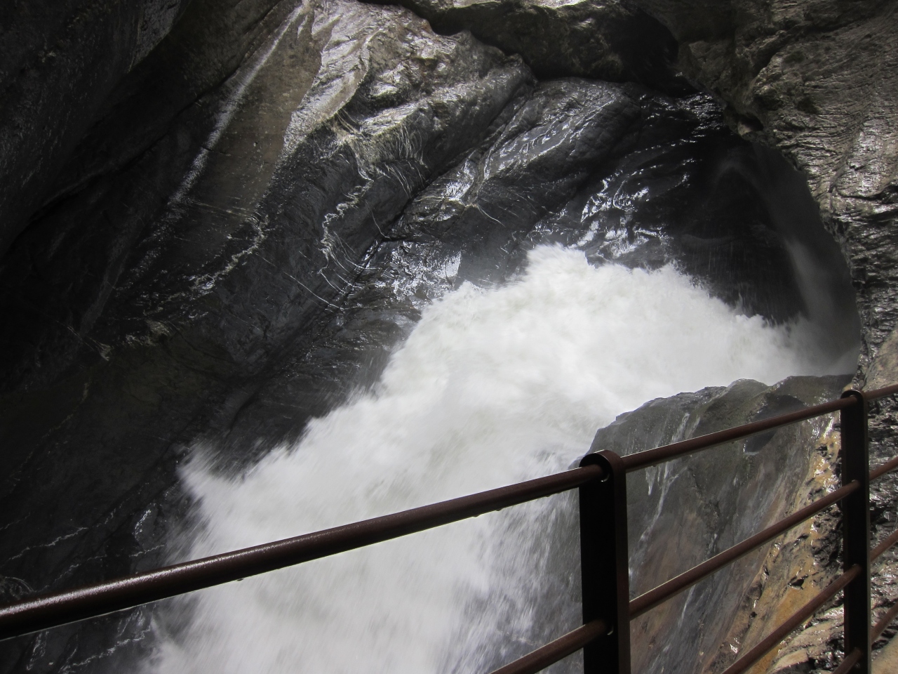 近くに大きな駐車場とレストランがあり、道順に沿って歩くと小さな小屋があり、そこで入場料を払います。リフトで上まで行き、降りながら滝を見学する感じです。滝沿いに小道が掘ってあり、水量も凄い滝が本当に近くに見えて迫力、満点です。