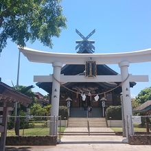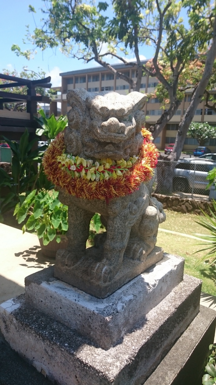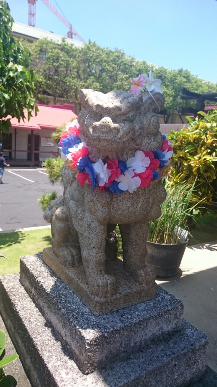 狛犬はレイをかけられていてハワイらしいです。