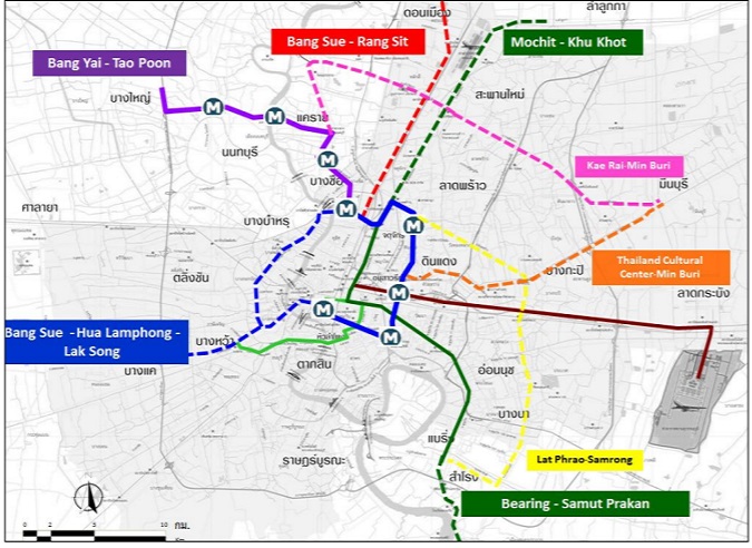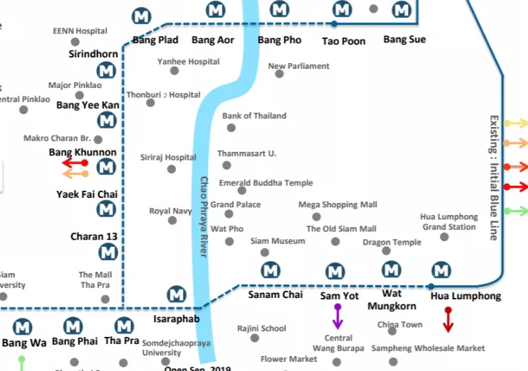 ファランポーン駅からチャオプラヤー川を越えるまでは、地下の工事が主体となり、川を越えると地上を走行するようになり、バンケー駅まで延びる予定で、2019年に開業する予定のようです。