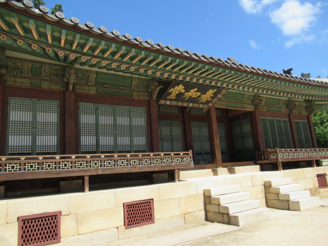 今回は昌慶宮を見学しています。正殿である明政殿を見学し奥(西)の内殿へ行くといくつかの建物がありますがその奥の通明殿の右となりにこの「養和堂」があります。これだけの大きな御殿を見学していると少々小さいな、と思うのは私だけではないでしょう。創建は昌慶宮と同じ1484年とのことですが何度かの火災で焼失現在の建物は1834年ですがその中で歴代の王である第16代王の仁祖が丙子胡乱の時にここに戻り住居としていた場所とのことです。韓国の歴史は奥深く難しいですね。こうして多くの王宮を散策するとその歴史を少しだけでも学ぶことができます。貴重な旅です。