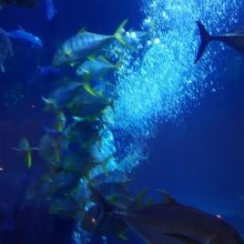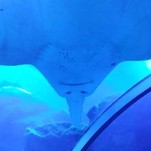 まずは Gフロアにある巨大水槽の前を通って水槽トンネルへ向かいます。巨大水槽内のトンネルはサメやエイを下から眺められるスポット。トンネルを抜けると一回フロアに出てエスカレーターで2F(日本式では3階)の入り口から再度入場。熱帯魚等が展示されている水族館フロアとこうもりやハリネズミ等が展示されている動物園フロアに入っていきます。