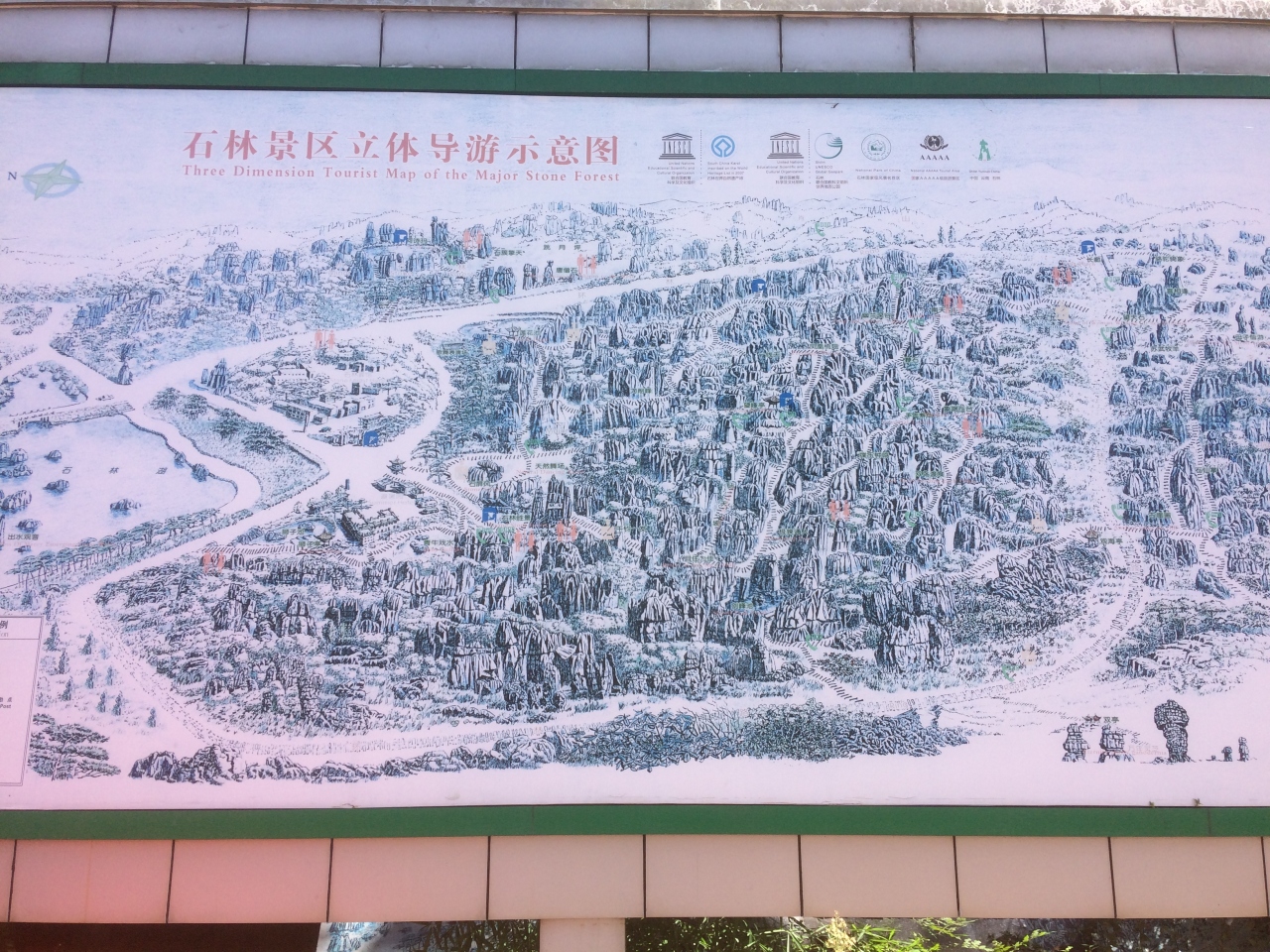 大石林景区の風景は見事です。大というだけあって中はかなり広く、方向感覚が効かないので、迷ってしまいます。ガイドをつけて回っている人もいましたが、その場合は奥の方には行かないみたいです。ガイドは中国語か英語で、英語の方は中国語より高めです。いずれにしても一人旅でガイドをつけるほど経済的に余裕はないので、はっきりと断ります。