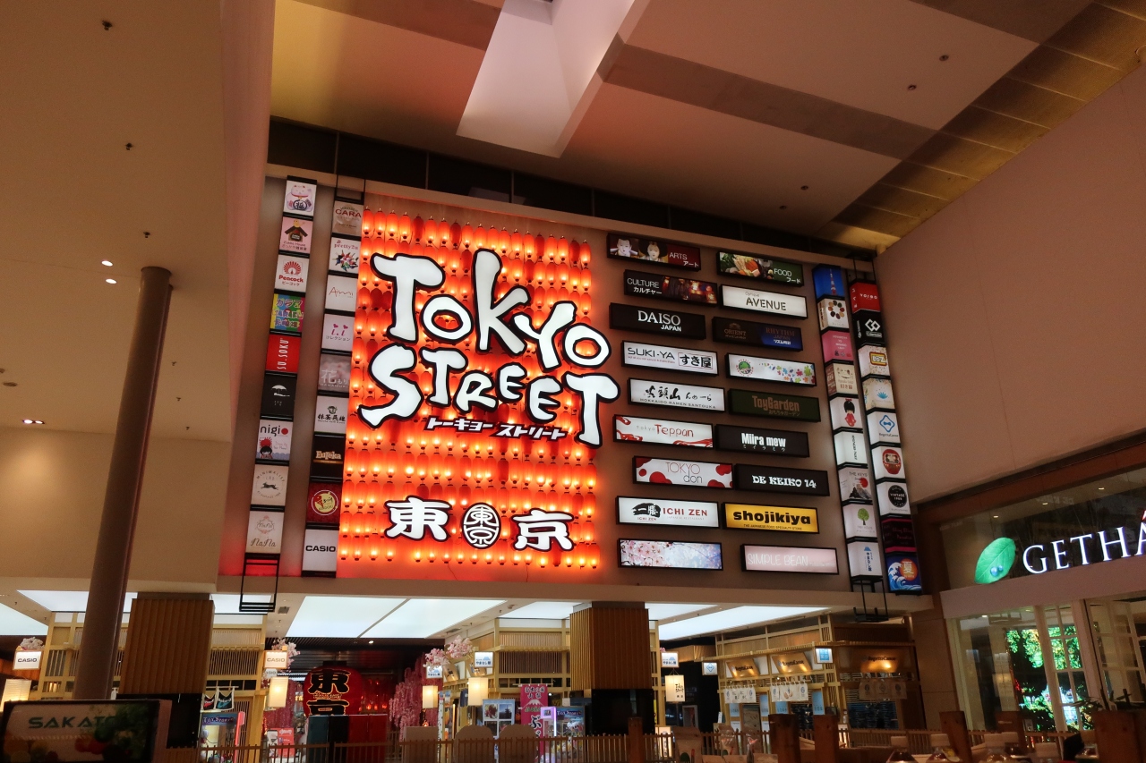 パビリオンの6階にありました。「TOKYO STREET」というだけあって、日本の雑貨、レストランなどが入っていました。「DAISO」は少しスタイリッシュな外観。レストランには、すき焼き、定食、らーめんなど、日本食が色々あります。日本の雰囲気が感じられ、写真を撮られている方が何組もいらっしゃいました。