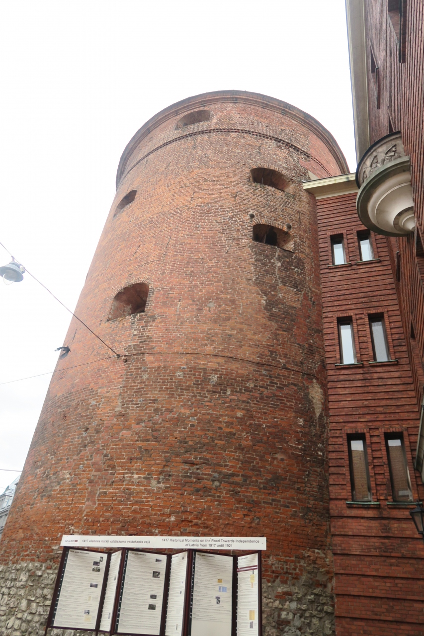 旧市街を囲む城壁を辿っていくと、レンガを積み上げて造られた火薬塔に突き当たります。スウェーデンの攻撃により半壊するなどしたため、何度か修復されているようですが、中世から残る建物でリガの歴史を物語っています。中はミリタリーに関する博物館になっていました。
