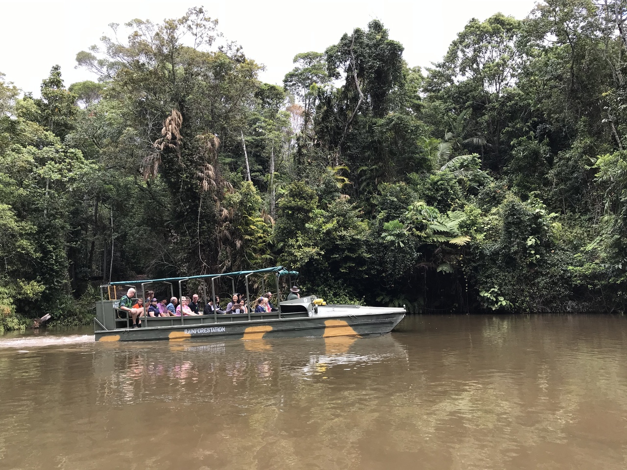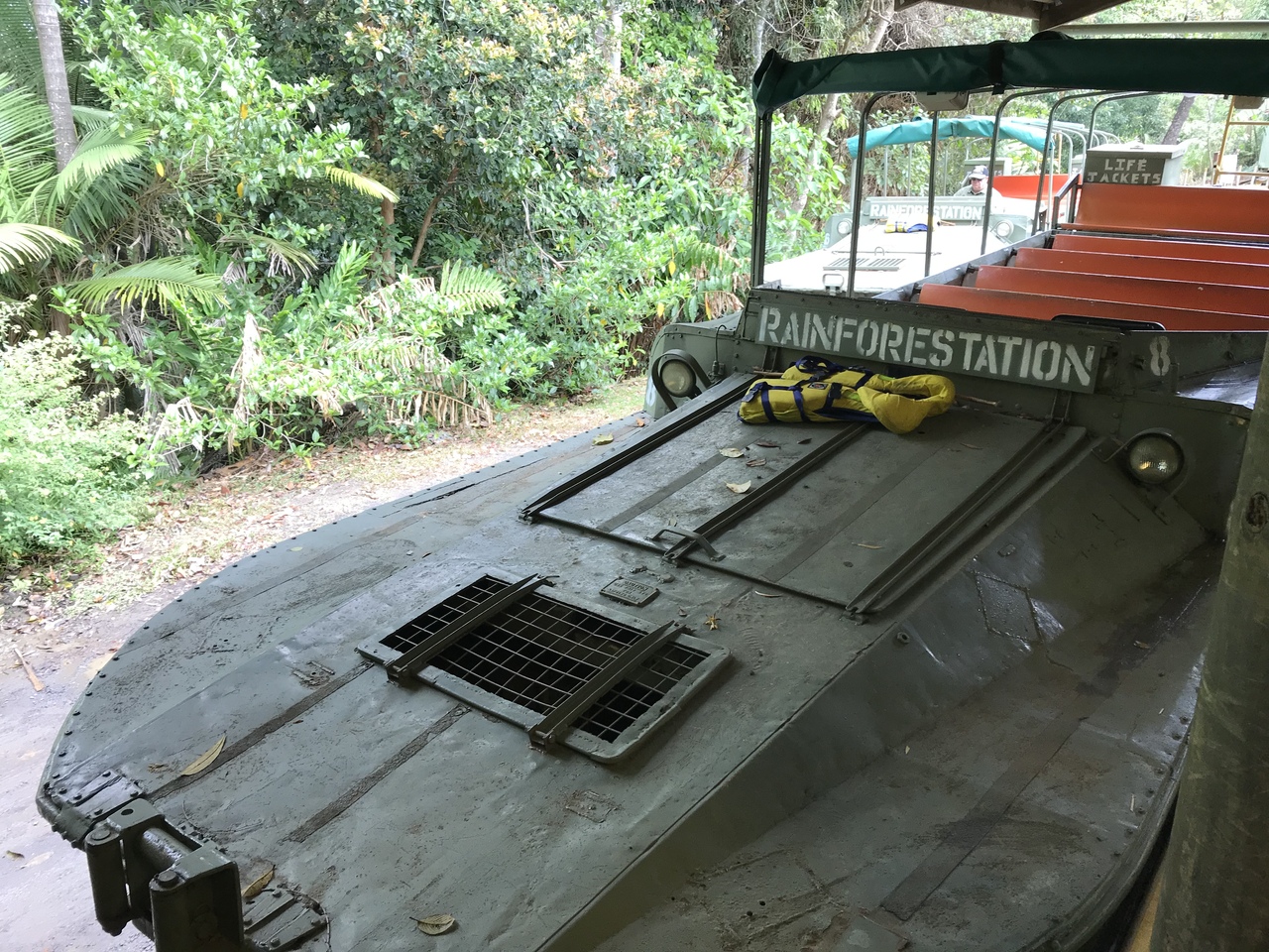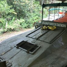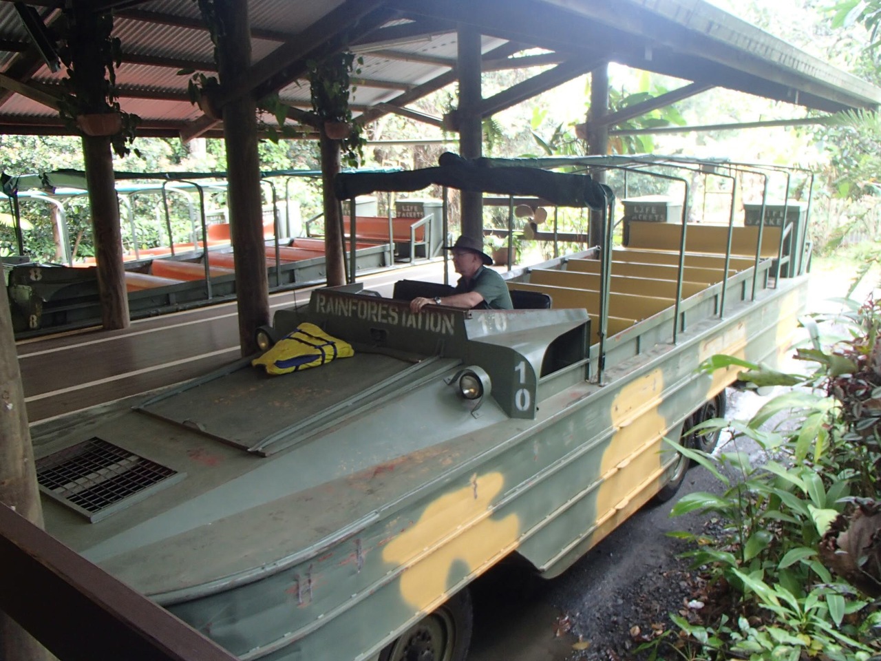 ツアーガイドの方が同乗して日本語でガイドしてくれました。熱帯雨林のジャングルの中を珍しい植物や動物の説明を聞きながら楽しく探検していきます。ガイドさんのトークが楽しくてあっという間の乗車体験でした。(ガイドさんとドライバーさんとの掛け合いが絶妙でした。)あの夢の国のアトラクション、ジャングルクルーズのリアルバージョンと言ったところでしょうか。キュランダ観光の際はぜひアーミーダックにも乗車する事をお勧めします。