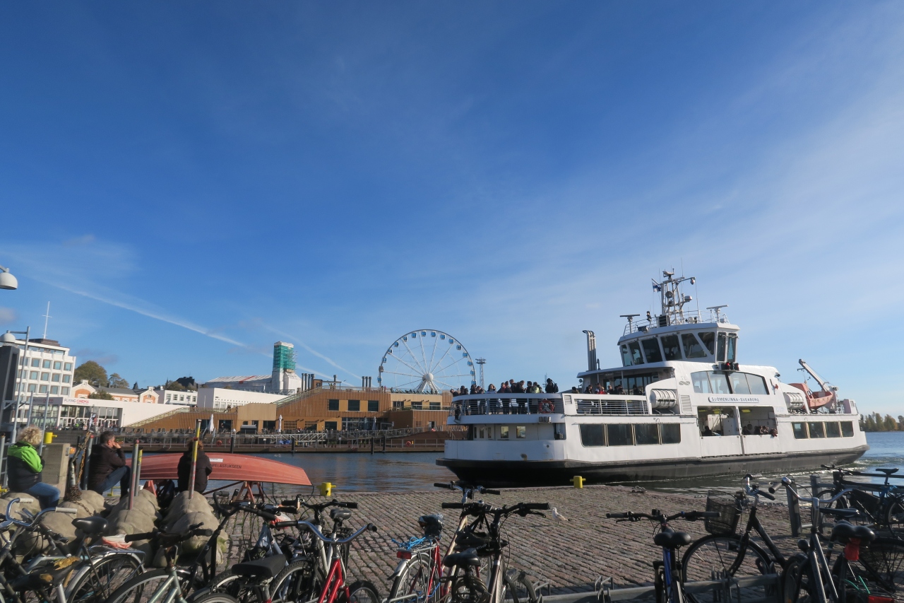 スオメンリンナ島行きのフェリーは複数出ていますが、公共フェリーに乗れば、トラムのデイパスは公共機関共通なので、フェリーでも利用出来ました。船は二階建てで、弐階部分がオープンエアーになっていて、人気のようでした。