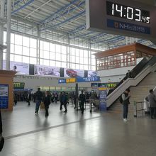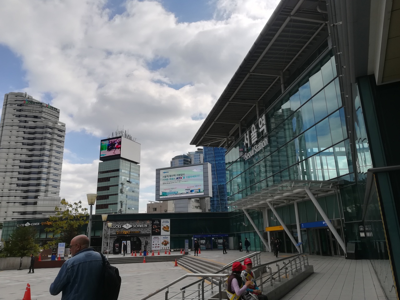 広く多くの乗降客が行き交う駅。移動目的の方は勿論、ロッテマートなどの店舗が併設されているので買い物客や 食事処も利用している方も多いです。