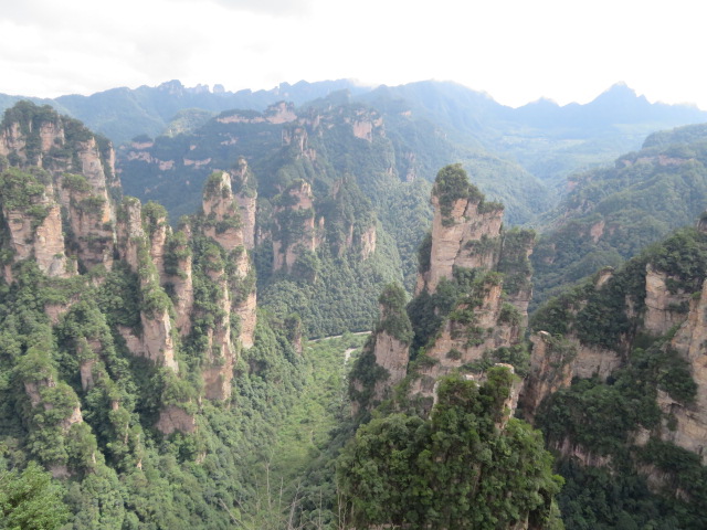 袁家界の景色は今まで見たことのないスケールの大きい奇岩群でした、遊歩道には所々に展望台がありじっくり見ることが出来ました、写真も多く撮ることが出来ました。