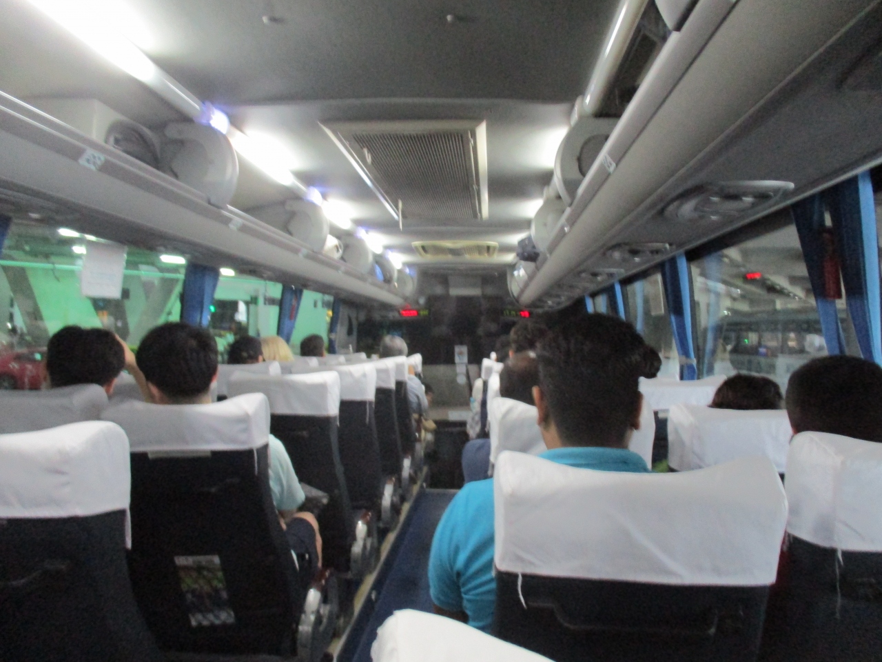 日本を出発する前、ベルトラベルサービスのウェブサイトで事前に予約しました。予約時は3人程度しか座席が埋まっていませんでしたが、利用sいた当日はほぼ満席状態でした。運良く隣の座席には誰も来ませんでした。座席の事前指定はインターネットで可能で、前の座席から埋まっているようでした。
