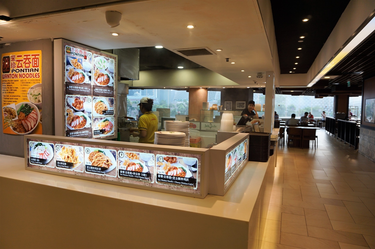 マリーナ・スクエア4階にあるフードコート。(以前は、ギャラリーという名称だったようです)。夜には、マリーナ・ベイの綺麗な夜景が望めます。なのに、混んでいない穴場的なフードコート。