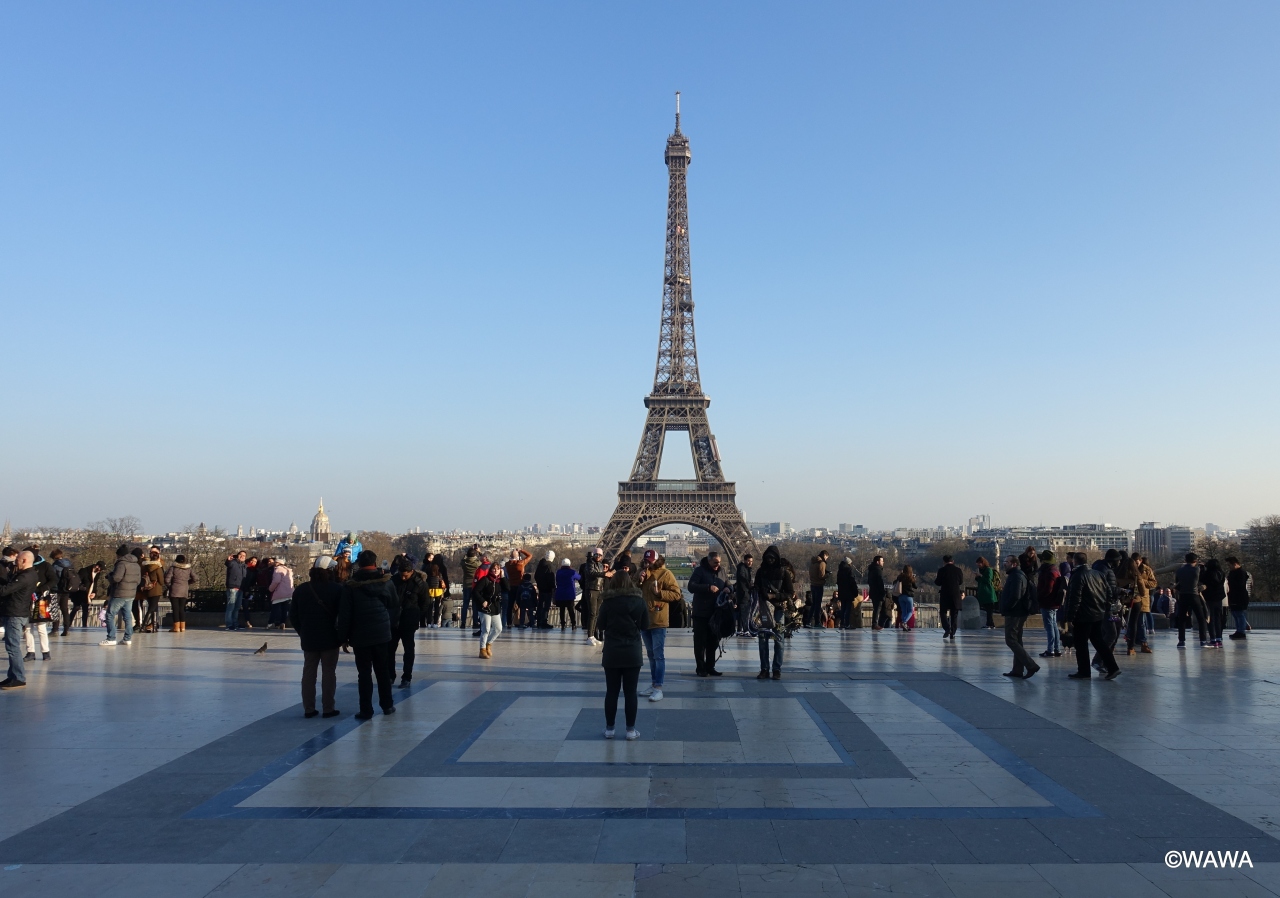 朝一番からオランジュリー、プティパレ、グランパレ、ケブランリーとミュージアムを梯子した後にエッフェル塔に立ち寄りました。真下まで行こうとしましたが、工事中と混雑で諦め、セーヌ川を北に渡りトロカデロ広場やシャイヨー宮の高台から眺めて終わりました。