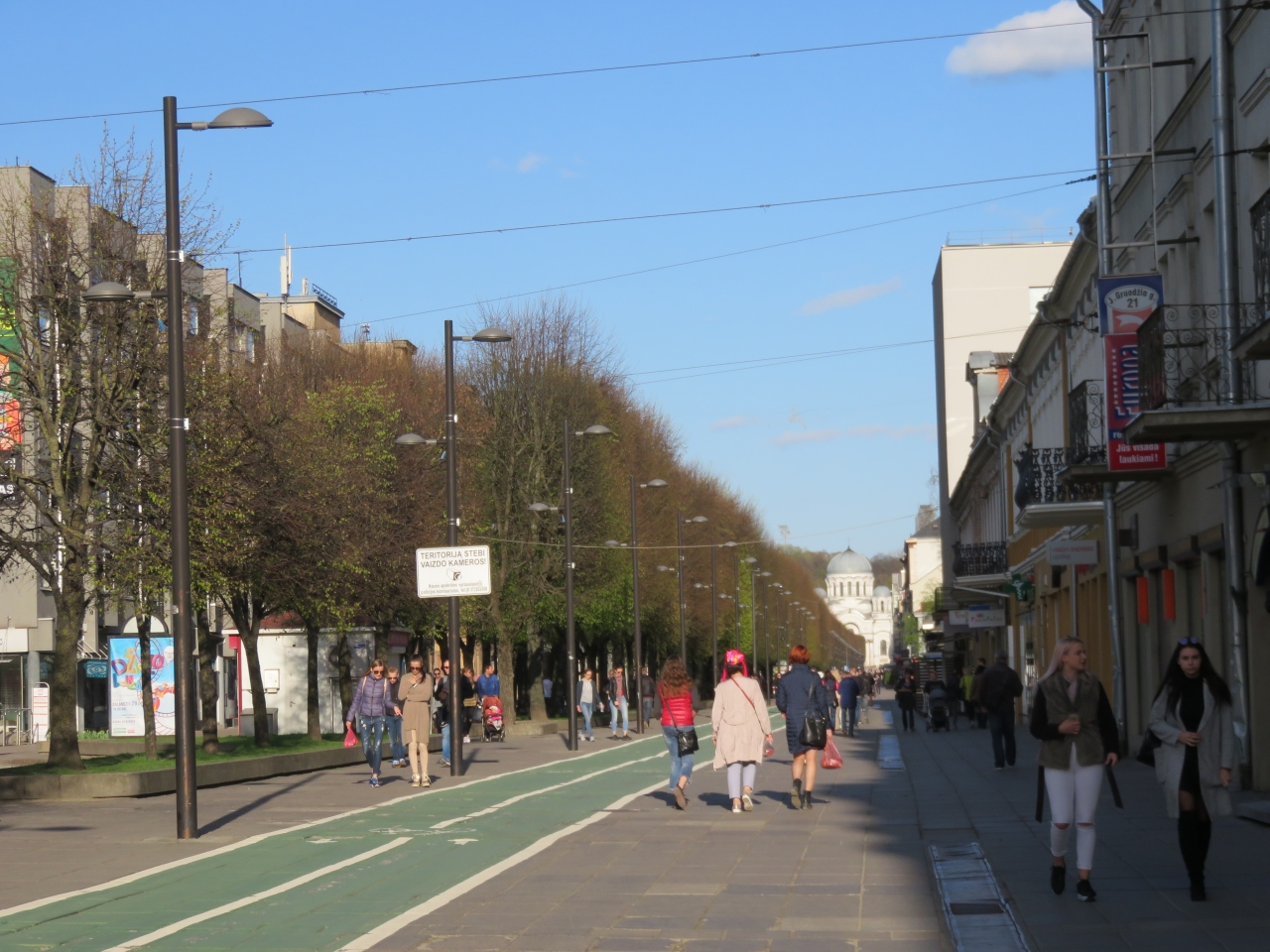 カウナスの街のメインの通りです。聖ミカエル教会から旧市街の入口のビリニュス通りまで街路樹がずっと続いていてキレイに整備されています。自転車用のレーンまでありました。通りの左右にはショップやオープンカフェなどたくさんあり夜でもとても賑やかです。だからといって治安は悪くないように思い遅くまで出歩いてしまいました。