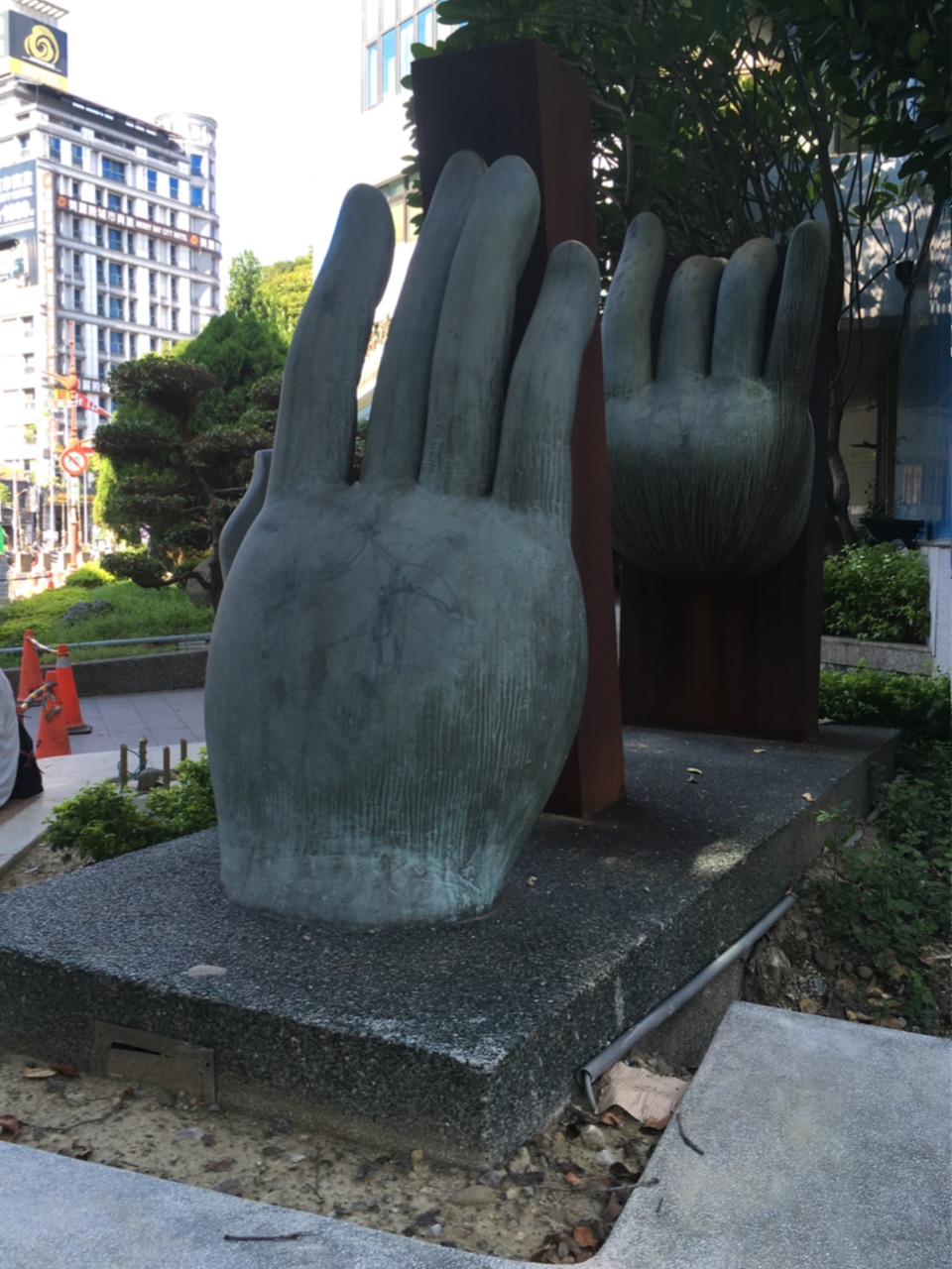 出口の近くに石でできた大きな手のオブジェがあり、待ち合せの目印にいいと思います。