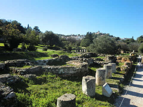 古代アゴラの中の遺跡ですが、市場があった場所と言われています。