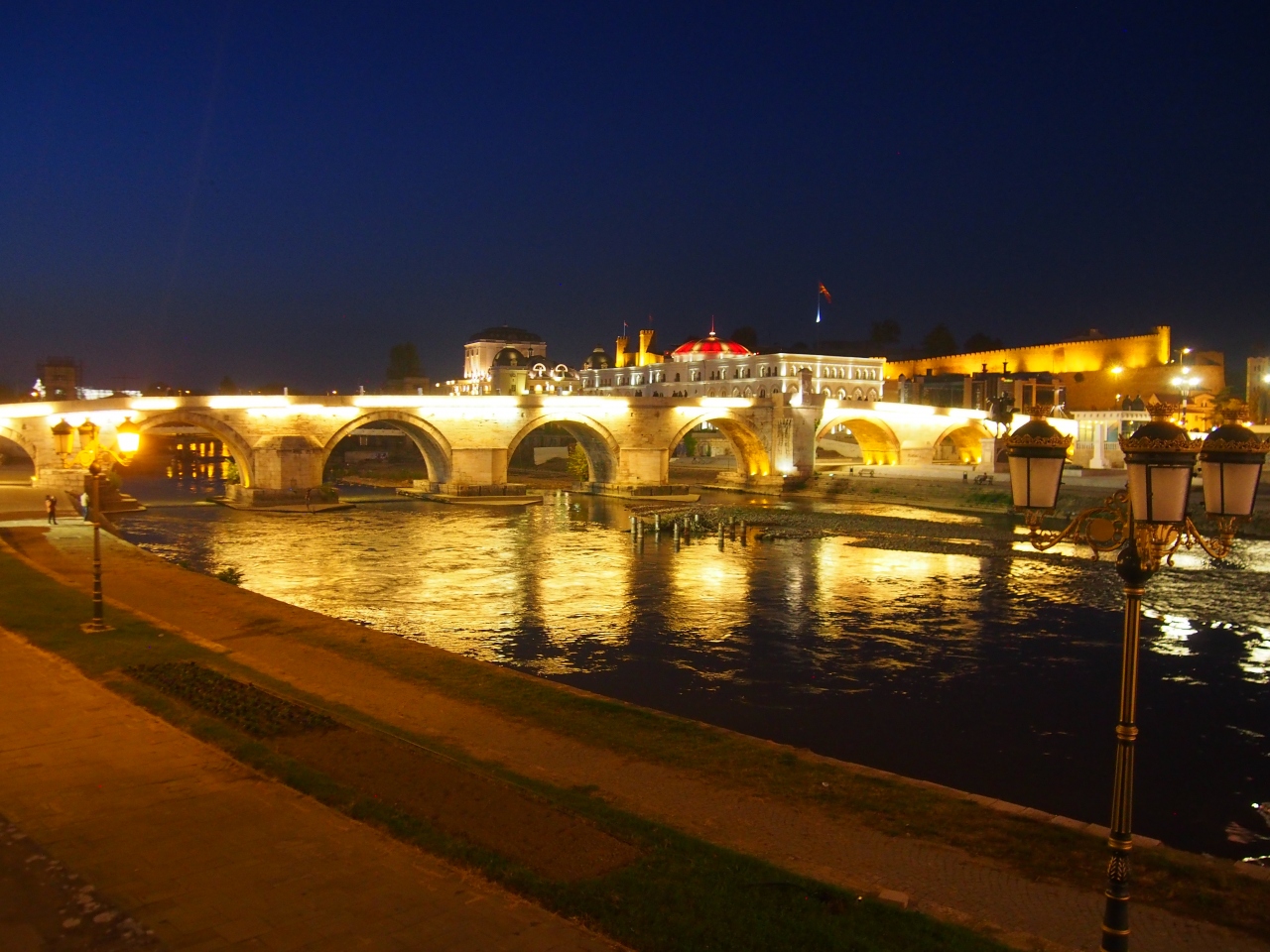 スコピエの中央部を流れている川です。川の両側には新市街(マケドニア広場側)と旧市街(フィリップ2世広場側)があります。スコピエ滞在中何度となく、川沿いを歩いたり、橋を渡ることが多いと思います。ここ数年で橋の両側には国立考古学博物館や歳入庁、外務省の官庁やアイブリッジ、アートブリッジなどの橋がかけられています。立派な建物で見ごたえがあります。また夜にはライトアップされた景観は素晴らしいです。