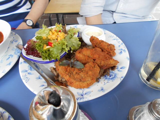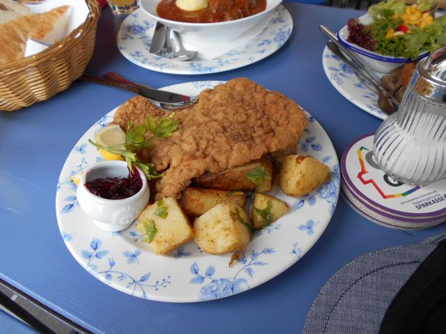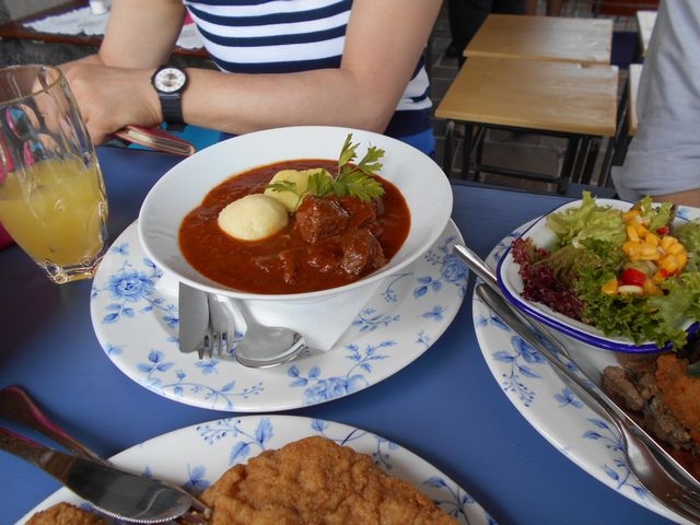 ホテルの周りを歩いて、カジュアルな感じのこちらで頂きました。定番のシュニッツェル、グラーシュにレバーの揚げ物。ビールは、もちろんゲッサー。初めて飲みましたが、飲みやすくておいしいですね。