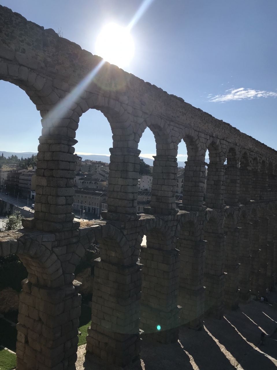 古代ローマ人の作った水道橋が、街中に、溶け込んでいるように、そびえ立ち、感動的です。こんなに大きな橋が、セメントや漆喰など接合剤なしに1世紀から、ずうっとあるなんて、驚きました。自然と、街の景色の一つになっているのが、すてきです。