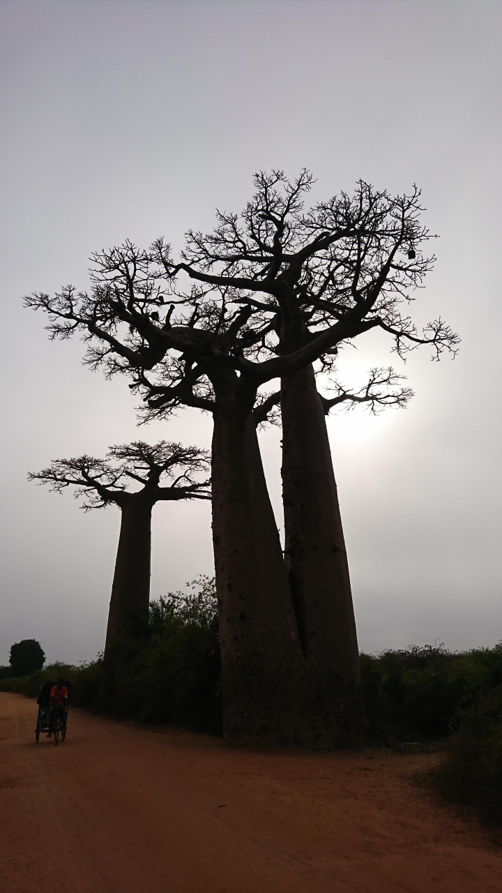 道の途中に突然あります。バオバブとしては幹が2つに分かれているのは珍しいのかもしれませんが、とくに感動することはない程度です。午前中は逆光でした。観光客は私たちだけでした。これだけを見に行くのは、ちょっと難しいです。