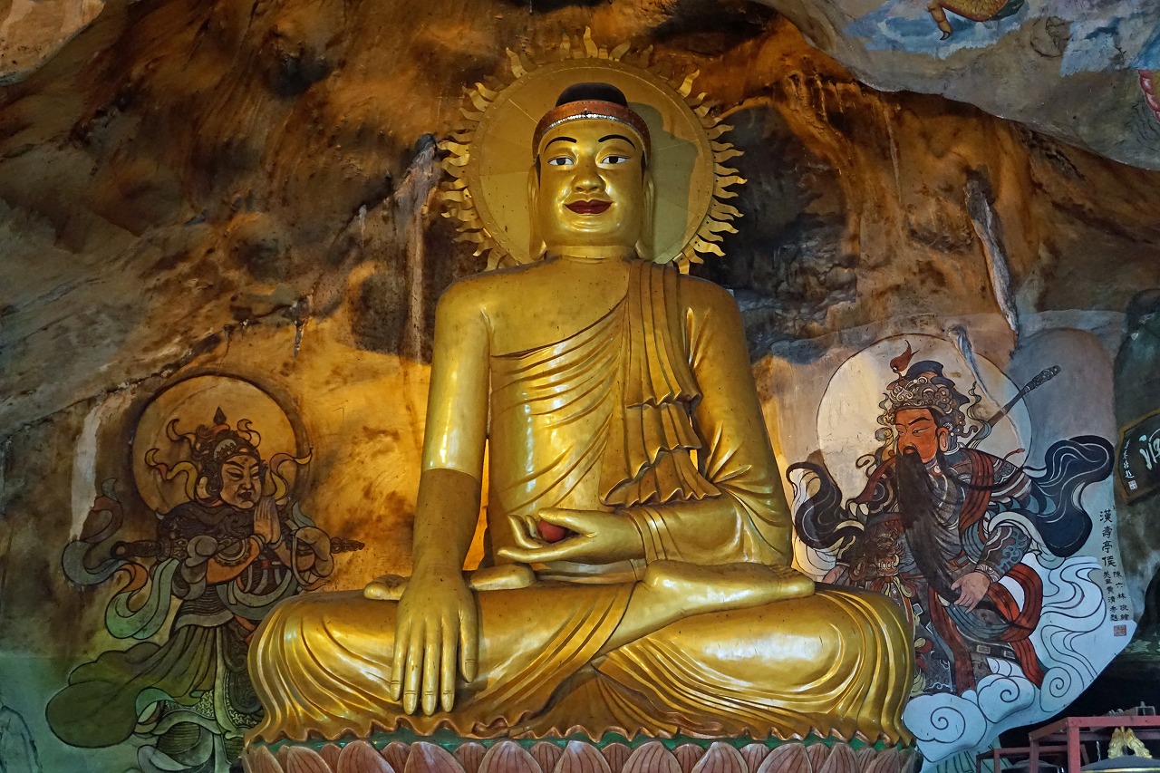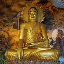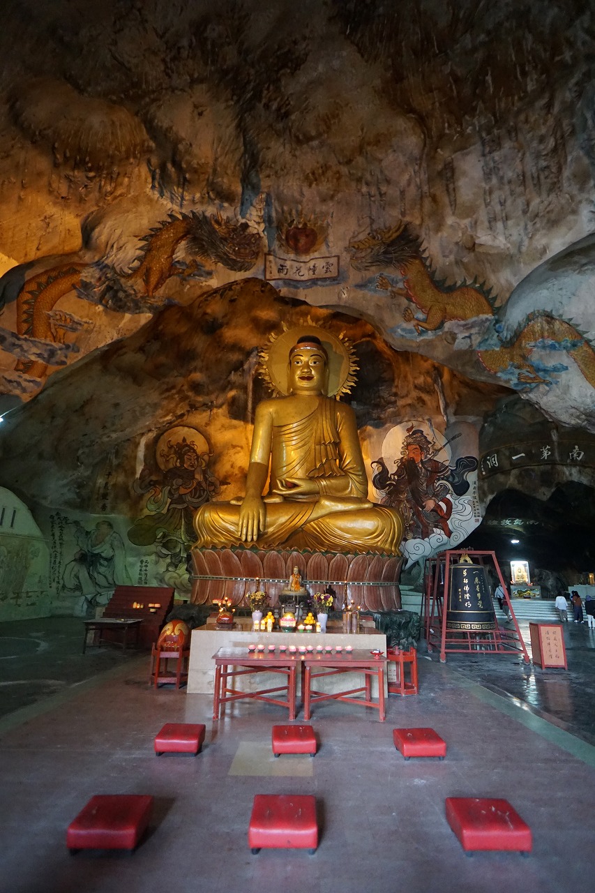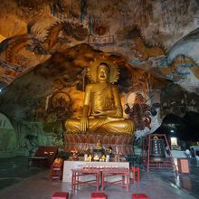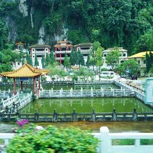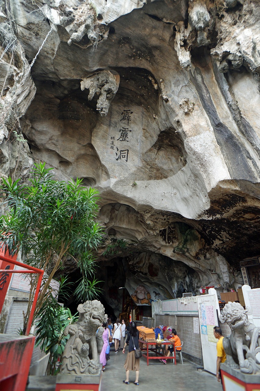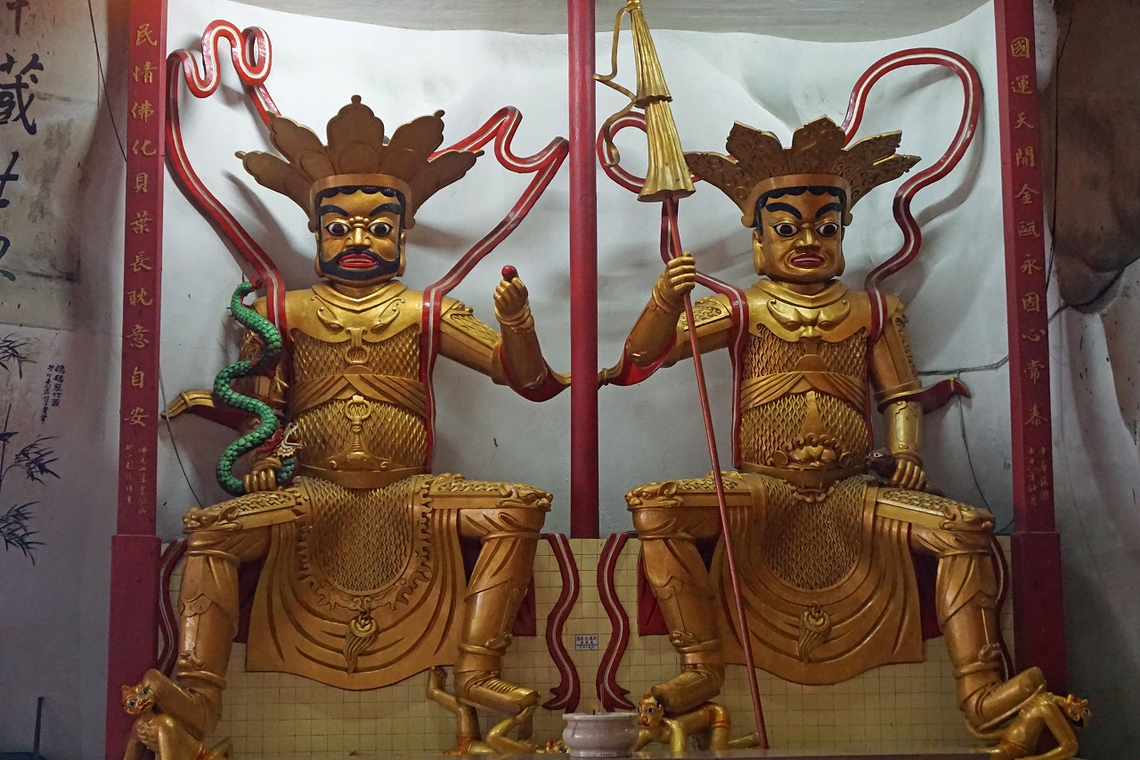 有名な洞窟寺院ですが、入り口の右側の壁に「寿」の文字がありますが、これは孫中山(孫文)の筆によるものです。マレー半島、特にイポーやペナンを旅するならば孫文の足跡や歴史を知っておくとよいと思います。本尊の両脇には脇時の四天王が安置されています。日本の四天王像とはちょっと違うのでよく見てください。持国天が琵琶を奏でて、増長天は剣を持っています。(これは日本でも同じです。)多聞天は傘を持っています。(日本だと宝塔と三叉の戟です。)広目天は龍を掴んでいます。蛇の場合もあるそうです。(日本では筆と巻物か戟・槍を持っています。)