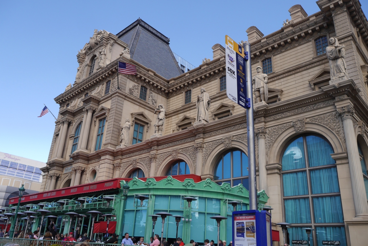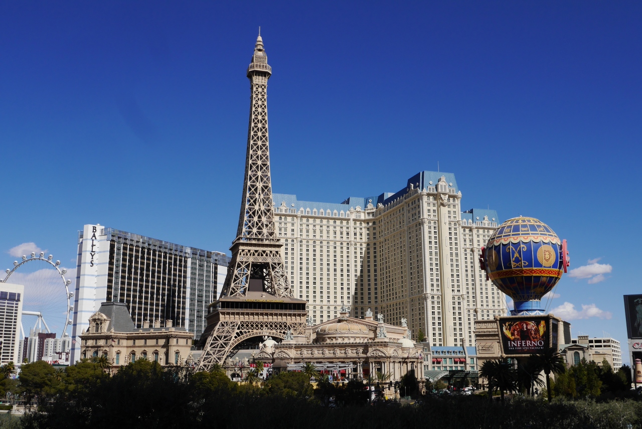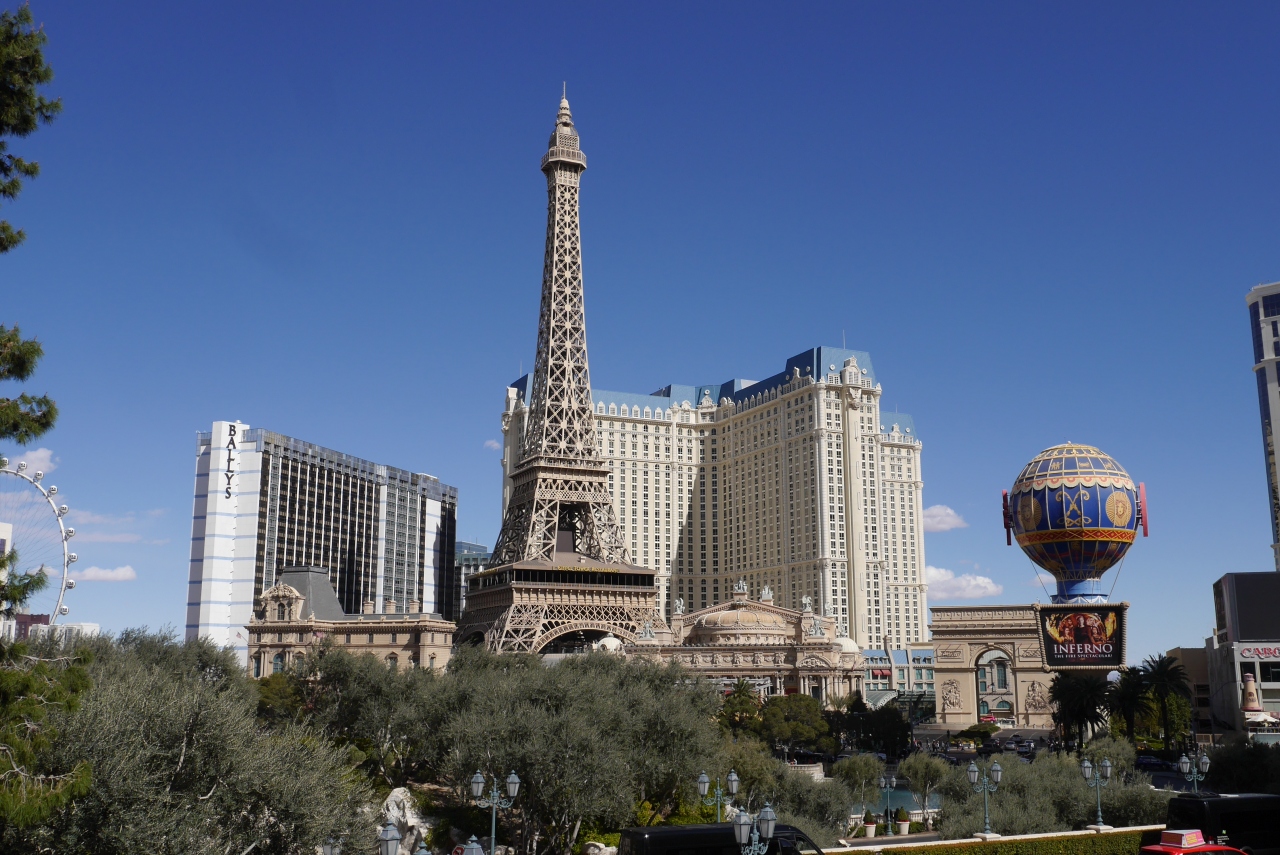 ラスベガスの大通りにエッフェル塔が建っています。本物とは比べようもない小さな凱旋門もあり、建物の外壁には沢山の彫像、レリーフが飾られ、パリを思わせる造りになっています。