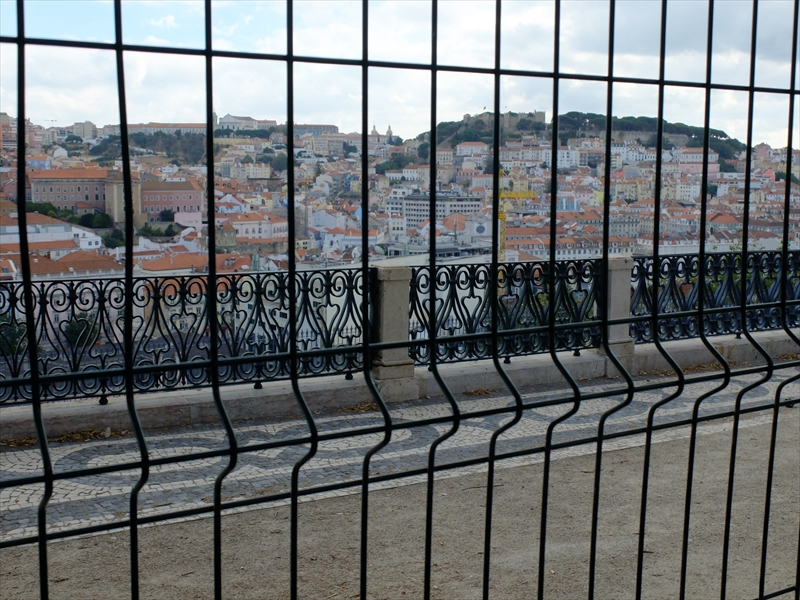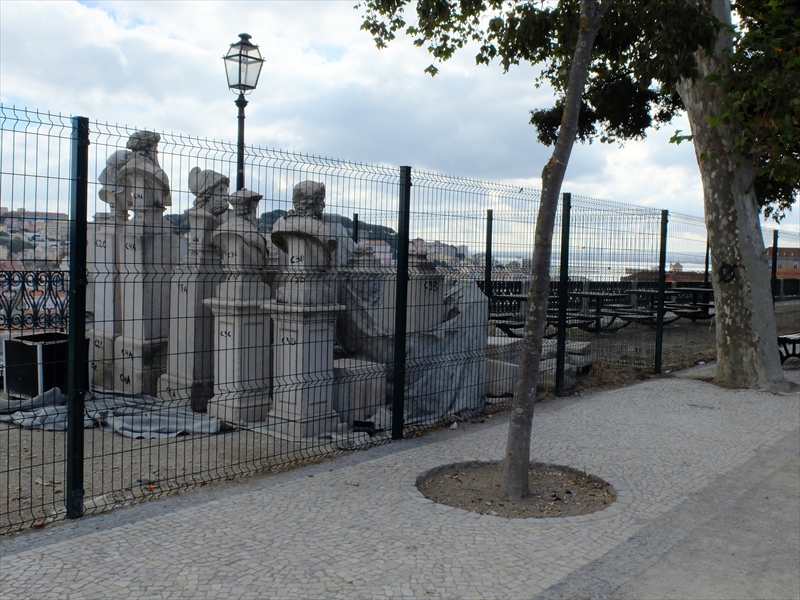 リスボン市街地が見下ろせる格好の位置にある無料展望台で、小さな公園風にもなった敷地にはお土産ブースも数軒並んでいましたが、2018年10月中旬現在は工事中。