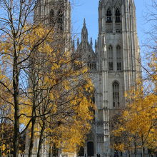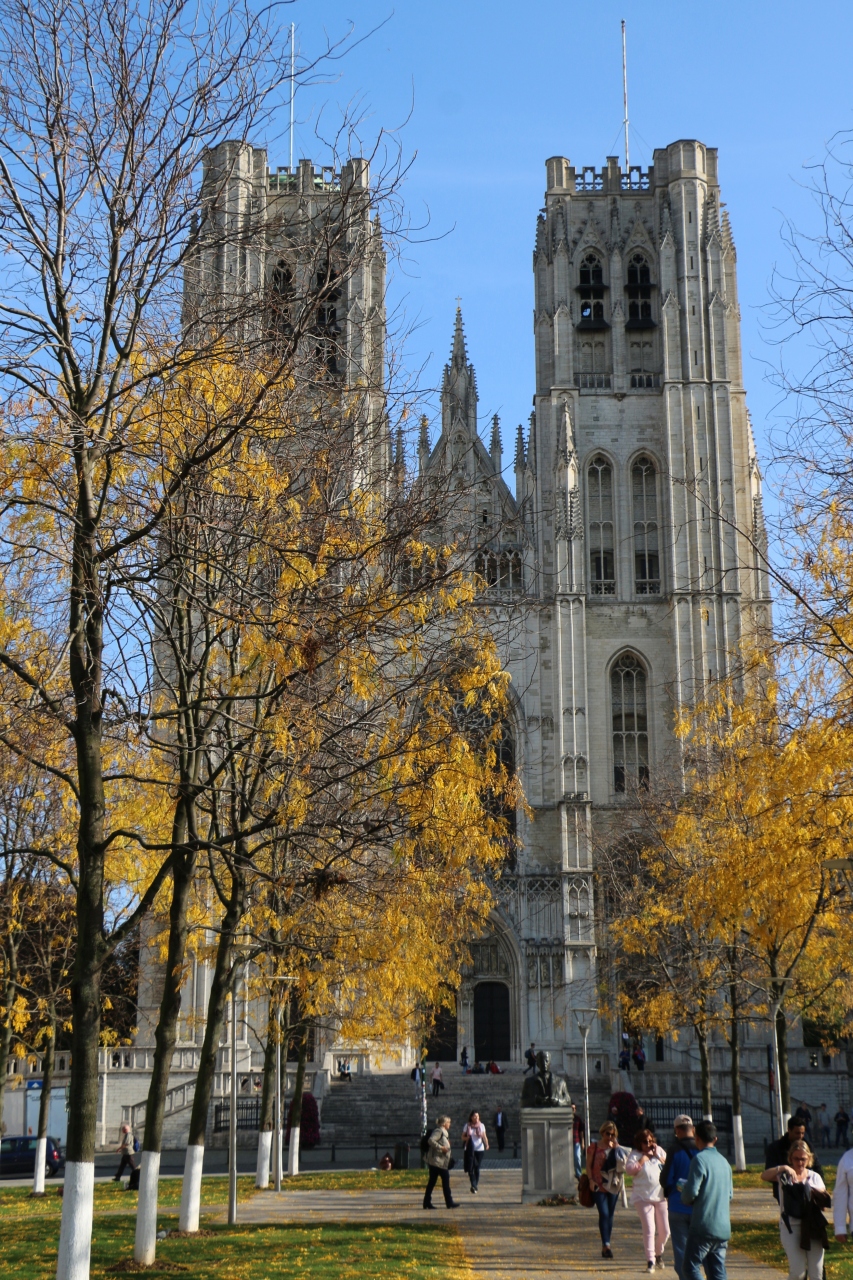 サンミッシェル大聖堂の前にある公園です。 秋でしたので黄葉が美しかったです。 ヨーロッパでは大抵は大聖堂は街の中心にあり、その前が広場になっていて賑やかですが、ブリュッセルの中心はやはりグランプラスで、そこから徒歩で5分ほど離れた大聖堂周辺は夜間はちょっと寂しい感じですので、女性の夜間の一人歩きは気を付けたほうが良さそうです。