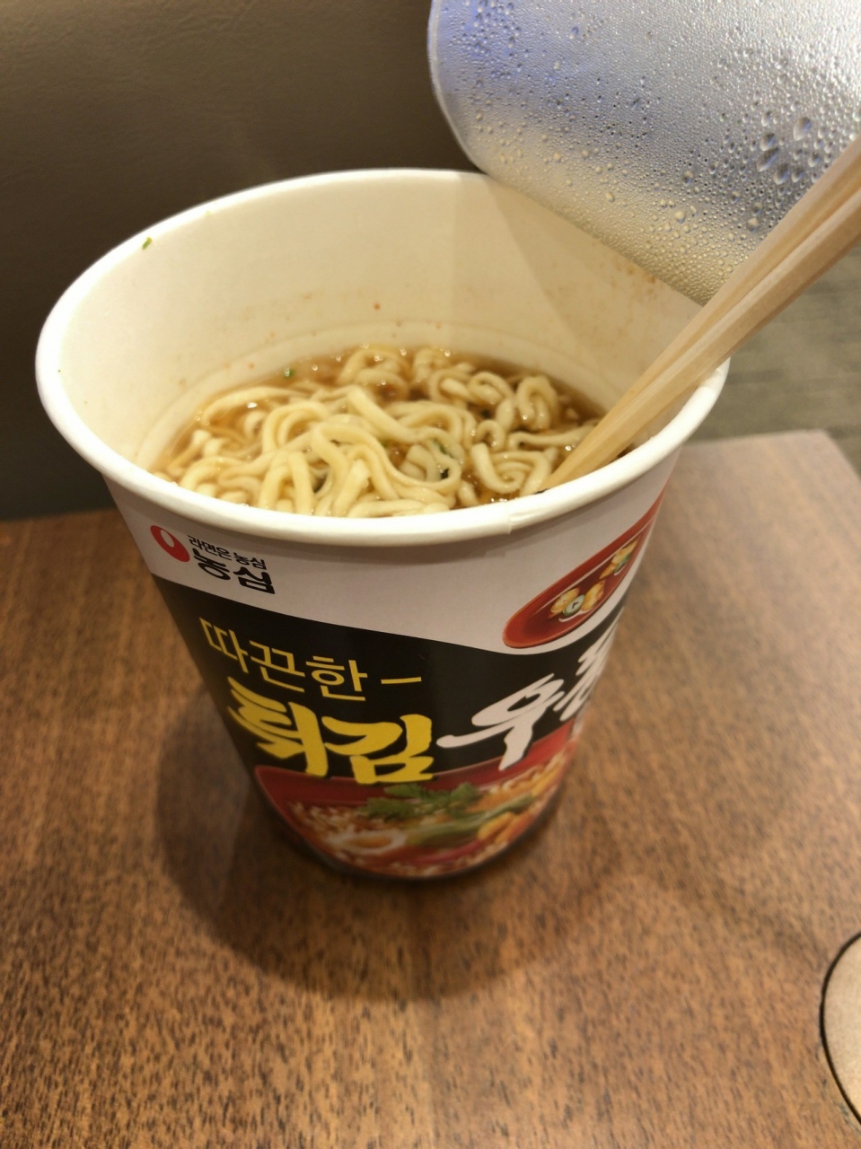カップラーメンが2種類置いてあり、試しに辛くなさそうな方を頂いてみました。カップラーメンなので、美味しい!とはなりませんが、薄味で優しい味でした。