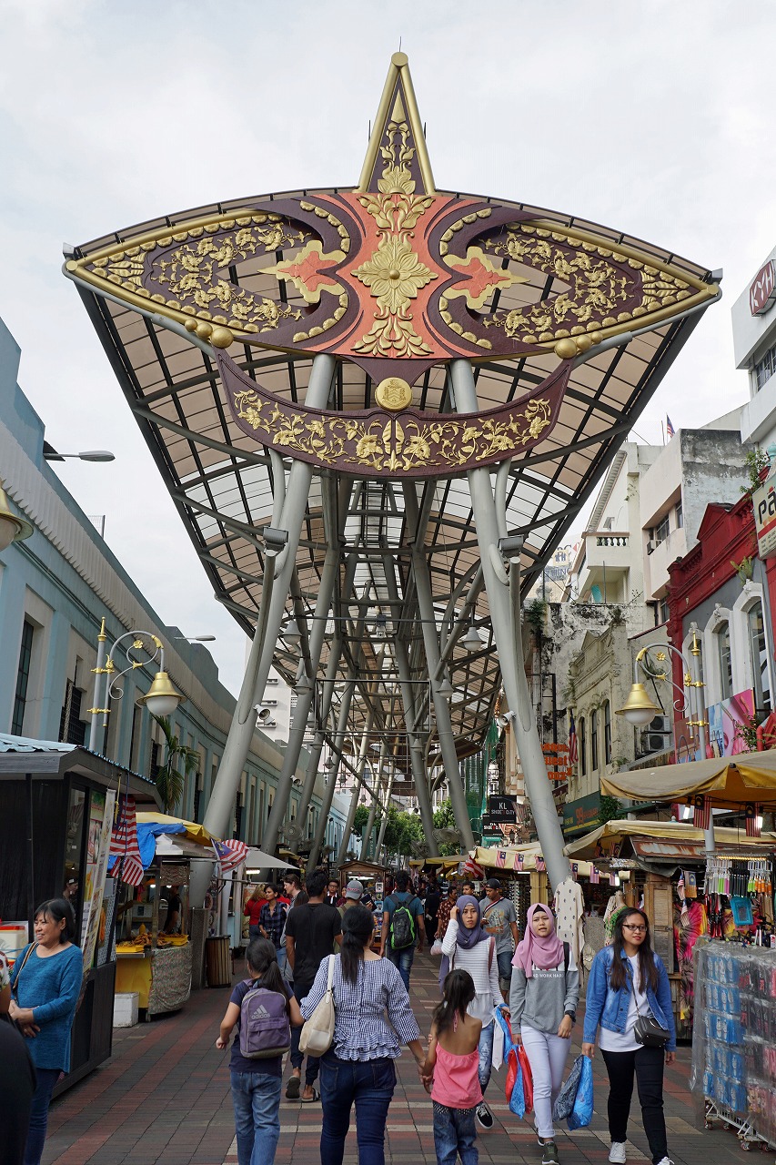 セントラルマーケットの隣のアーケードです。屋根はマレーシアの凧のワウ・ブランの形をしています。これはマレーシア航空の尾翼のマークでもあるので見たことがあると思います。東南アジアは突然スコールに見舞われることが多いので屋根のある通りはそれだけで価値があります。セントラル・マーケットの隣にあるので一緒に見て廻れます。食べ物や果物の屋台もあるので買い物途中で休憩も出来ます。チャイナタウンも近いのでお買い物は計画的に。