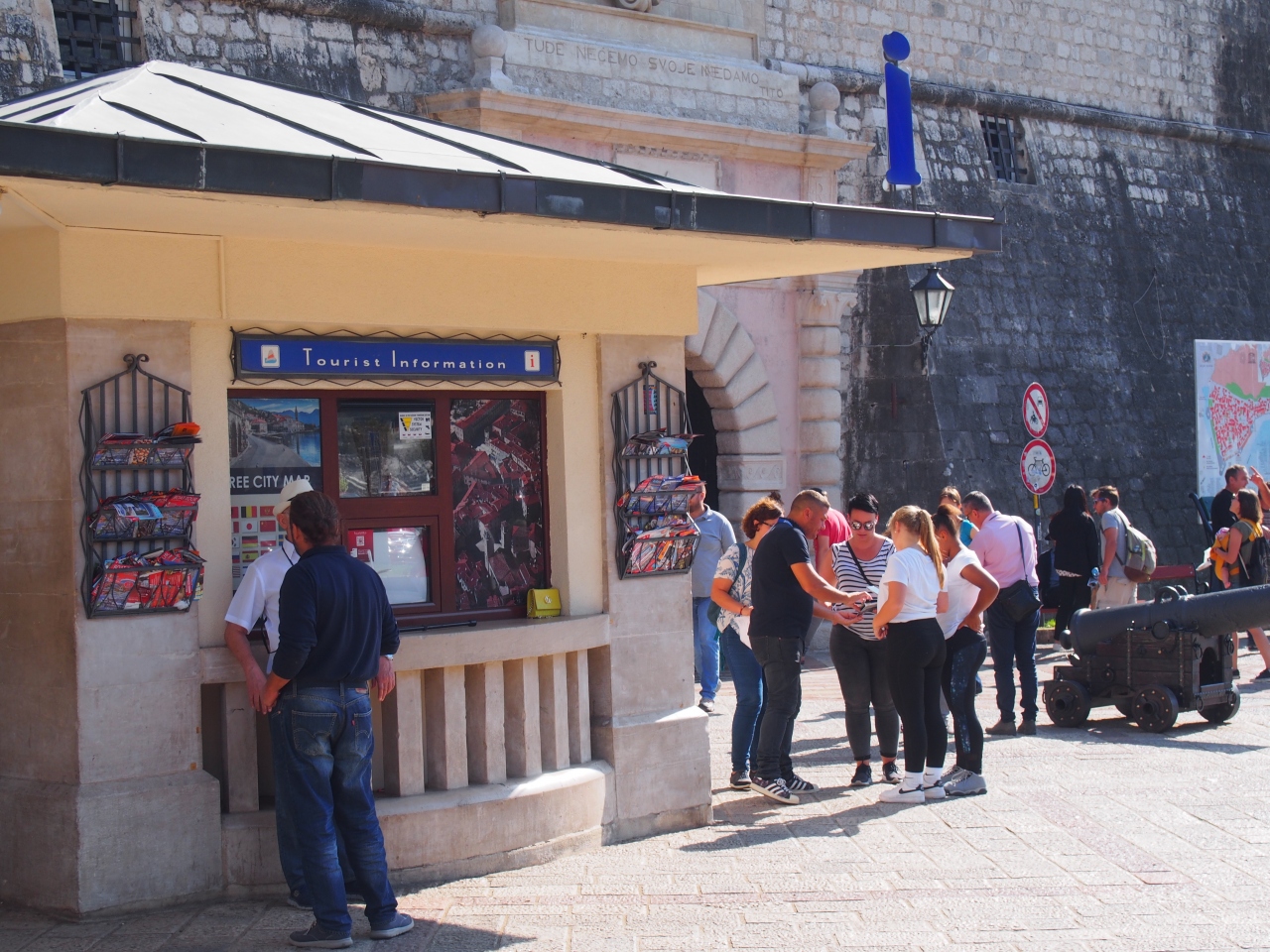 コトル旧市街の正門の入口の手前の左側に観光案内所はあります。案内所には無料でもらえる各語の観光地図があります。もちろん日本語の地図もありいただきました。旧市街は小さな街ですが、効率的に観光で回るのにとても役立ちました。