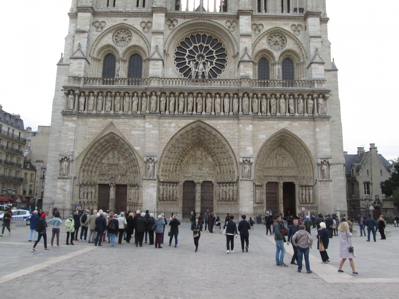 シテ島にそびえるように建っているノートル ダム寺院。特に、近くまでくると高く聳える双塔、空に突き刺すように延びる尖塔、すらりとした曲線を描くフライング・バットレス、バラ窓など見事なステンドグラスなど見どころがたくさんありました。専門でない私でも建築物として最高の傑作であると感じました。