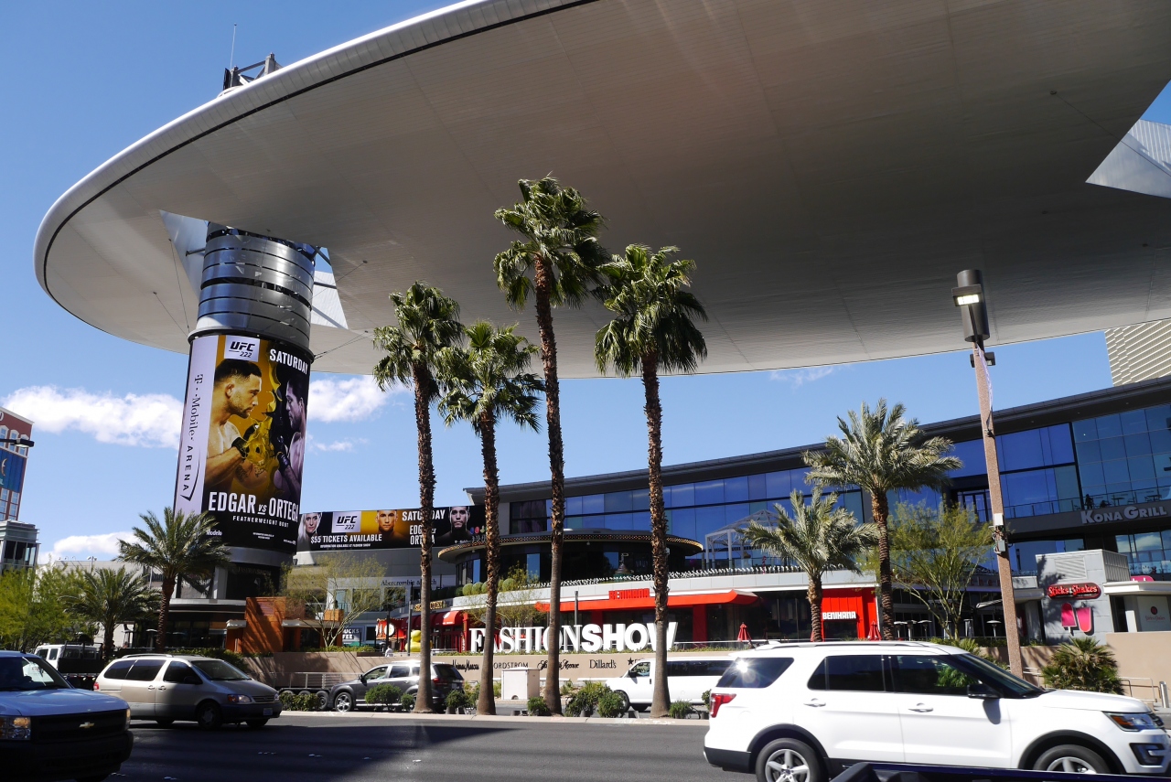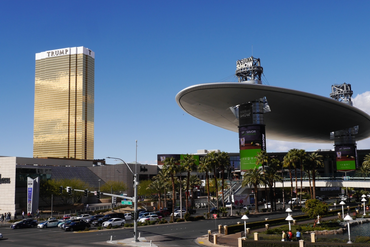 ラスベガスストリップ沿いにあり、ウィンと道路を挟んで建つ巨大なショッピングモールです。入り口を見たとき、ガソリンスタンドの屋根?円盤?と感じてしまいました。