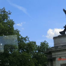 戦争記念碑は4頭立ての 馬車の上に立つ羽が生えた神です。