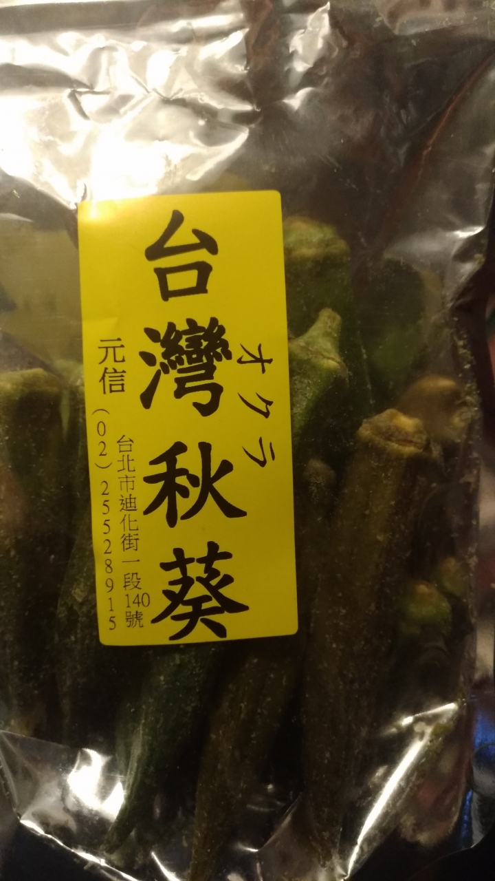 ここのおばちゃんが好きで、台湾に行く度にこちらでドライフルーツを購入しています。在台の日本人の方のおすすめで、オクラも美味しいよとのことで、購入してみました。オクラが丸ごと乾燥され、チップ?になっています。ビールのおつまみにピッタリでした。