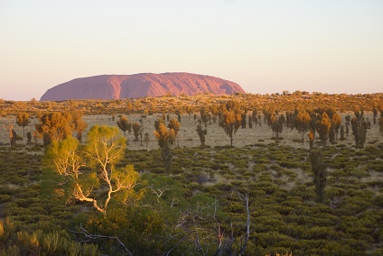 燃えるように赤い夕日がエアーズロックを照らし、やがてあたりは真っ暗に。