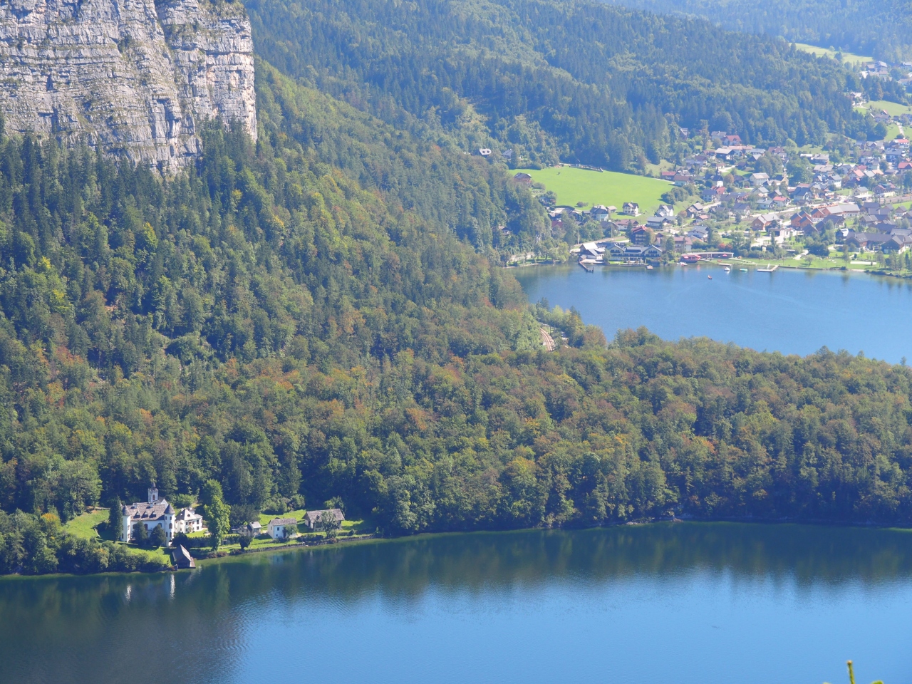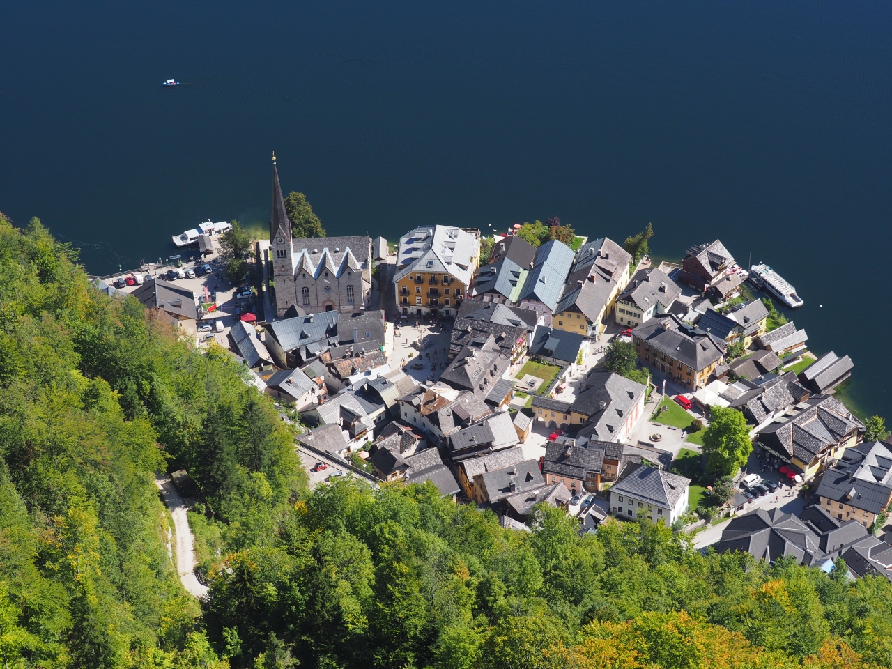 山頂駅は標高838メートル、ハルシュタット湖の湖面から360メートルの高さです。スカイウォークはまるで空中を浮遊しているよう、そこからの眺めは絶景の一言です。眼下にはハルシュタットの街とハルシュタット湖が広がり、周辺はザルツカンマーグートの山々が取り囲んでいます。天気さえよければまさに絵に描いたような美しさです。