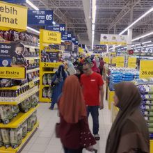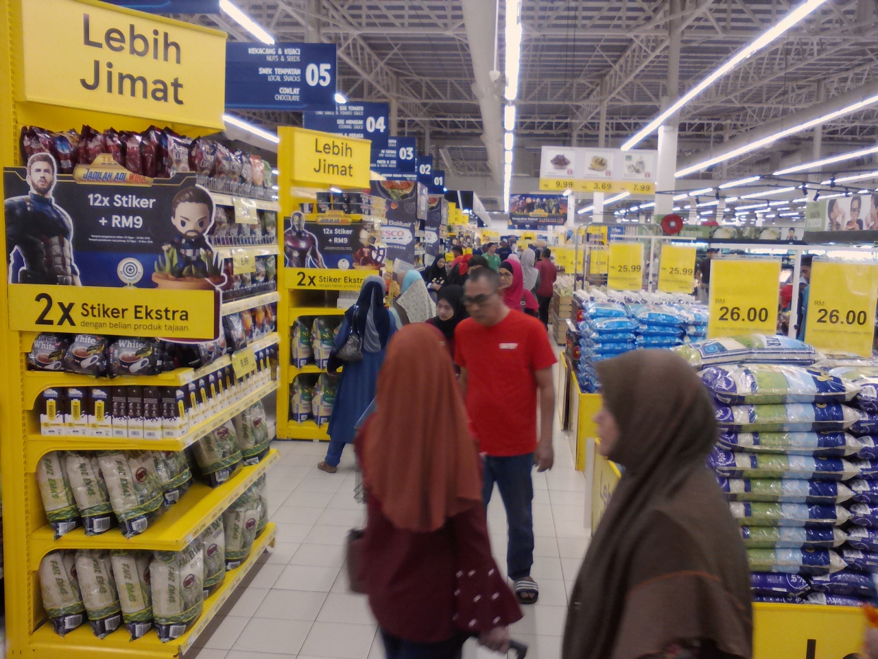 世界中に展開するスーパーマーケットのチェーン店、マレーシアにも何店舗かありコタバル店は市街やや南のクランタン川にかかる橋のたもとにあります。ショッピングモールになっていてスタバやKFC、フードコートなどもあります。スーパー店内も広く衣類、日用品、家電なども売られています。ざっと見た感じでは市内中心に幾つかあるスーパーよりも安いものもありました。訪れたのは休日である金曜日の昼頃。客も多く皆まとめ買いをしているのでレジも混んでいてかなり忍耐が必要な感じでした。